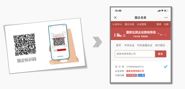 2、赋予唯一国企ID,企业可以选择使用数字ID或二维码进行展示。